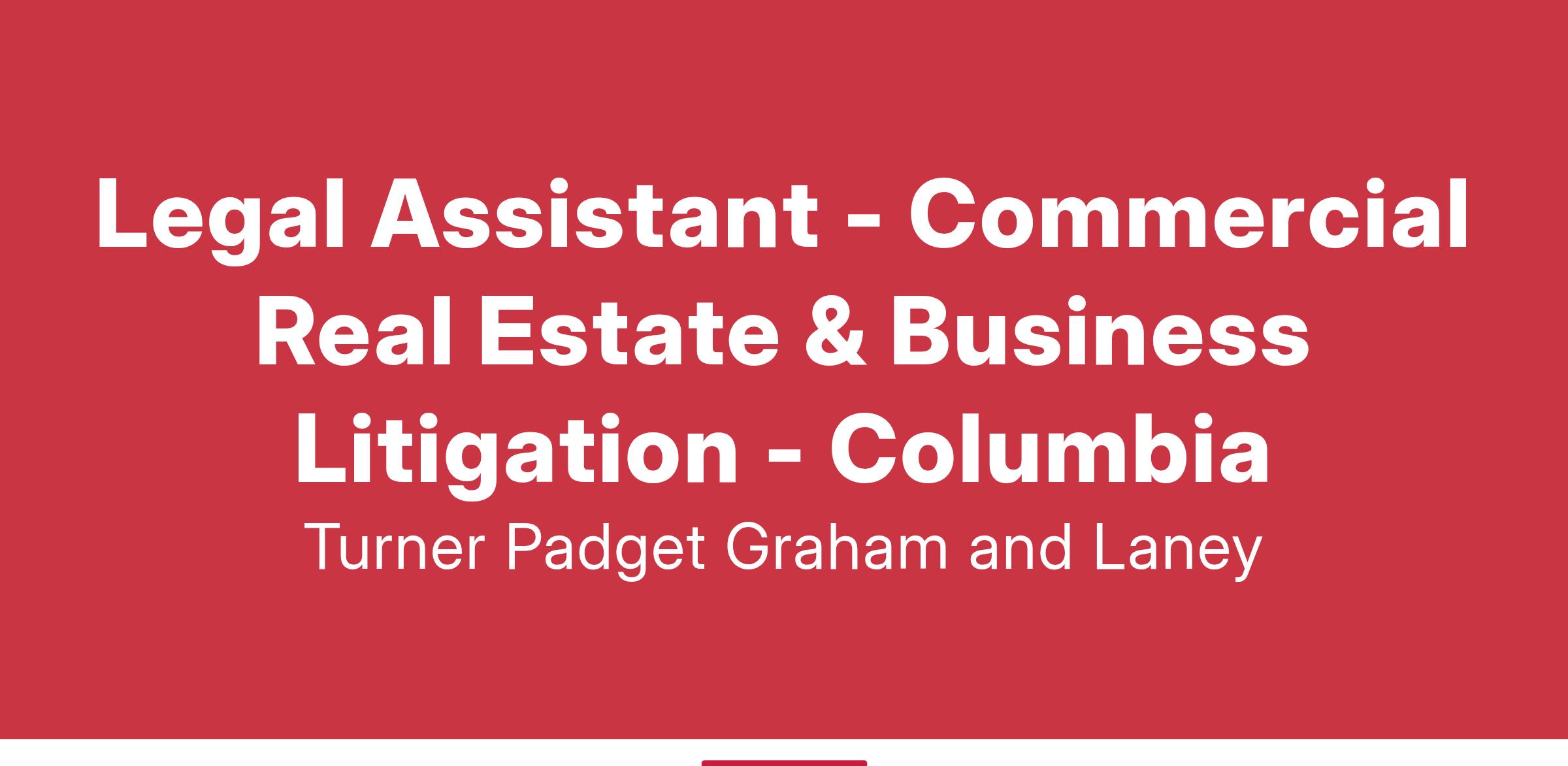 We are currently seeking a Legal Assistant - Commercial Real Estate & Business Litigation for our Columbia, SC office.