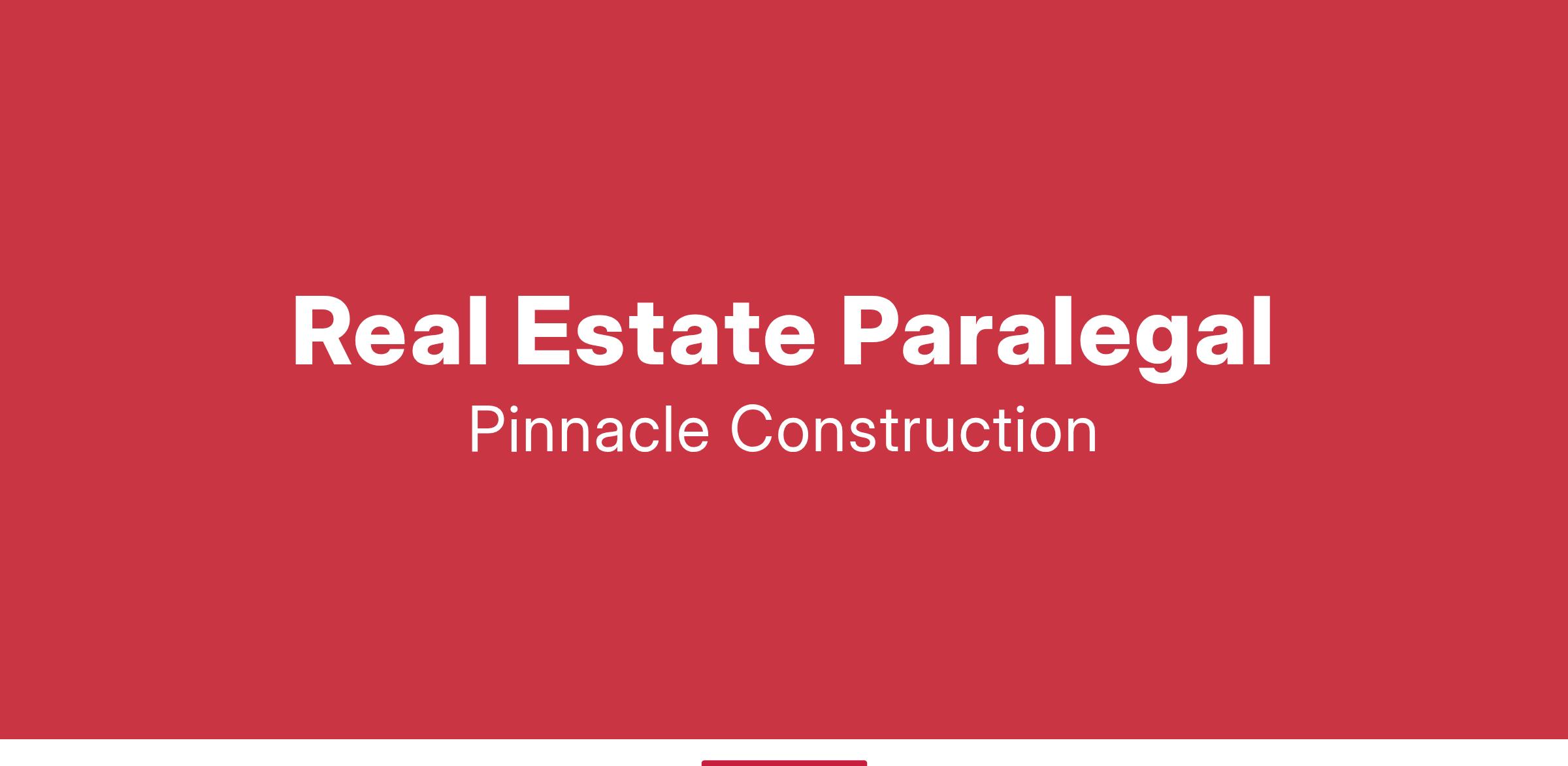 Pinnacle Construction and Development Corp is seeking an experienced Real Estate Paralegal to join our team in our Charlottesville office. The Real Estate Paralegal is responsible for assisting with all aspects of the development process for complex multi-family, mixed-use, commercial, and assisted living projects from initial concept through start of construction. Tasks include: feasibility analysis; land acquisition due diligence; compiling information for local governments and financing; loan applications; coordinating with attorneys, appraisers, environmental consultants, investors, architects, engineers, and the construction team. The ideal person for this position has proven expertise in real estate development. This position reports directly to the company Owners and works closely with the Chief of Operations of Pinnacle Construction and the Senior Vice President of Park Properties Management Company.