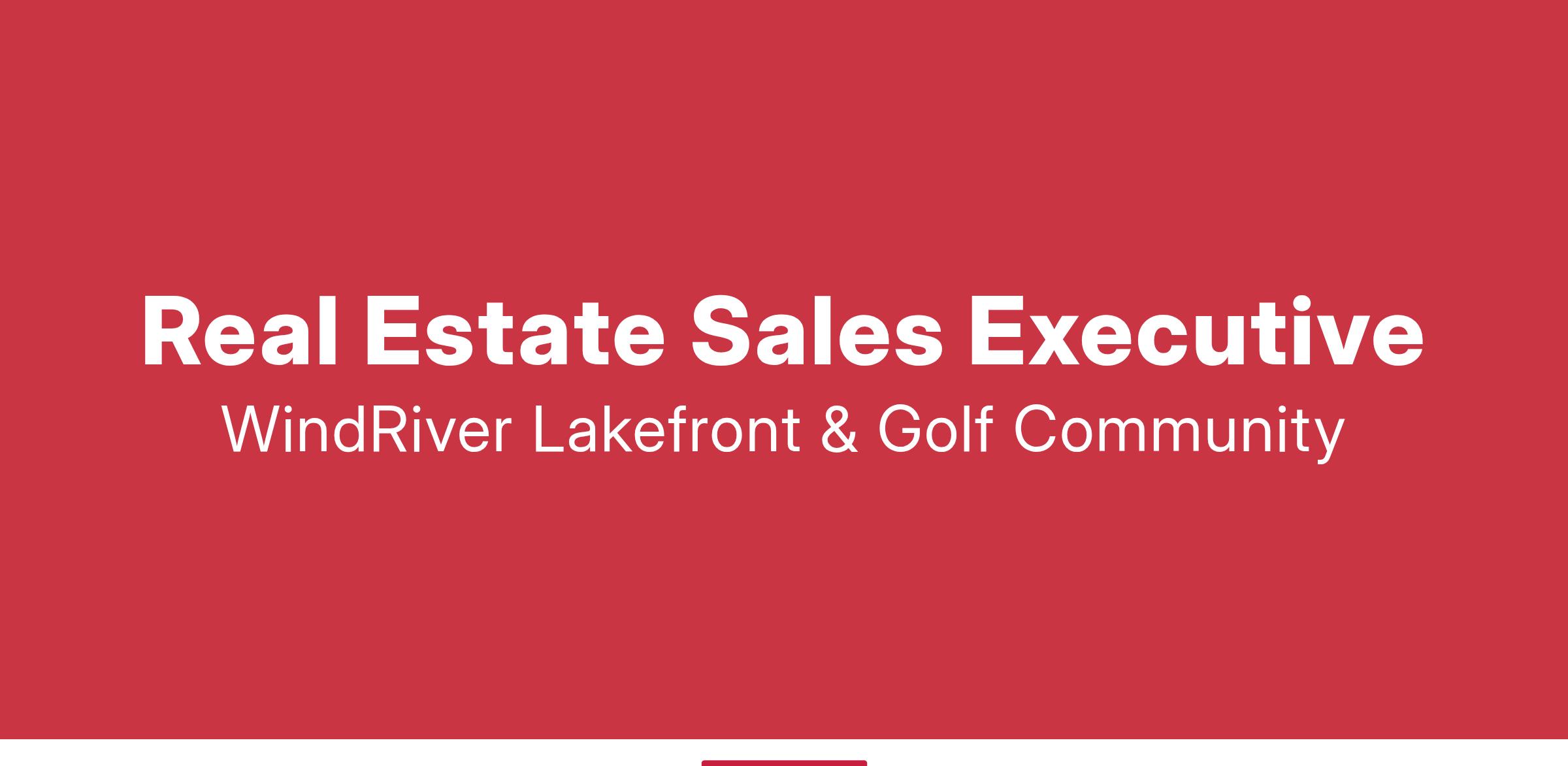 Summary: The Real Estate Sales Executive's main responsibility is to sell the luxury homes and homesites at WindRiver Lakefront & Golf Community. This position primarily handles all aspects of the Real Estate Sales division of WindRiver Properties LLC.